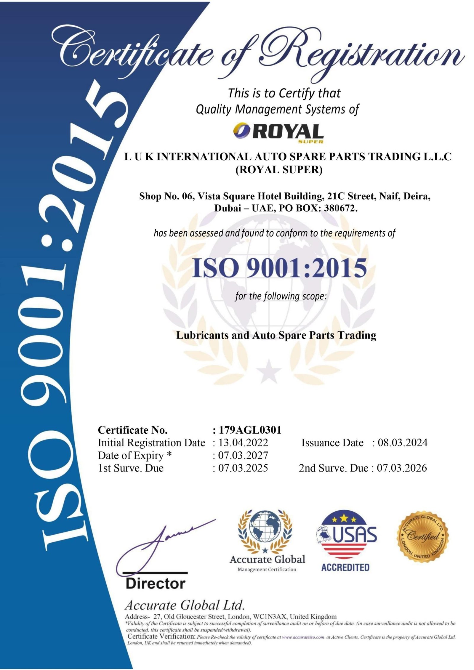 Best Lubricants Manufacturer in UAE. We are manufacturers of specialty automotive lubricants such as engine oil, gear oil, hydraulic fluids, brake fluids, ATF, grease, and coolant worldwide. Superior-quality lubricants oil is important, and fundamental characteristics of your vehicle depend on it like smooth running, fuel efficiency, performance, and emissions. Multigrade, full synthetic engine oils for modern gasoline engines have optimal viscosity over a wide temperature range.