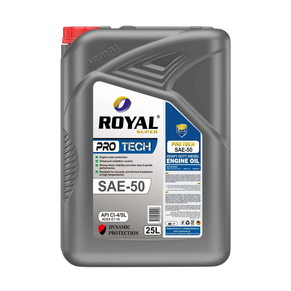 Royal Super - Super Premium Engine Oil SAE 50 CI-4/SL is an advanced Super Premium motor oil designed to keep your engine running like new by providing exceptional wear protection, cleaning power and overall performance. A fuel economy, universal motor oil, developed according the most recent technology, based on specially selected synthetic base oils to which advanced additives are added to obtain the below features. It makes great fixing between the cylinder and chamber, safeguards the motor at various temperatures and keeps up with ideal consistency for the best motor performance. Royal Super gives great wear control to safeguard the motor in various atmospheric conditions and unforgiving applications, protecting the motor in cold climate fire up and warm climate conditions.