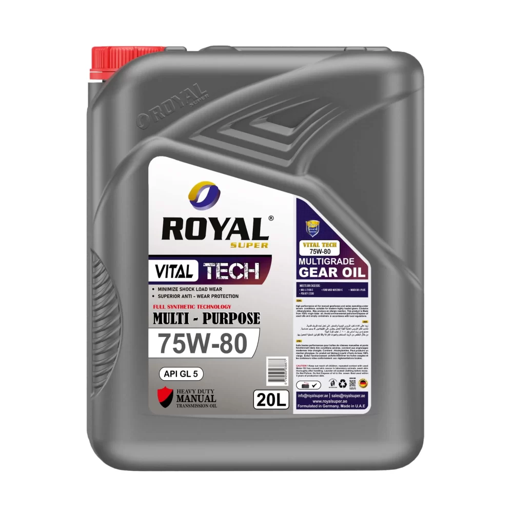 Royal Super Lubricant Gear Oil 75W80 GL 5 are mixed with great mineral base oil, as well as some anti-wear and against froth added substance which has solid oxidation and frothing obstruction use in uncompromising activities tracked down in business armadas, manual transmission, axels and last drives. Royal Super Gear oil for manual transmission safeguards against rust and consumption and low temperature properties, and gives a decent beginning in cold climate.